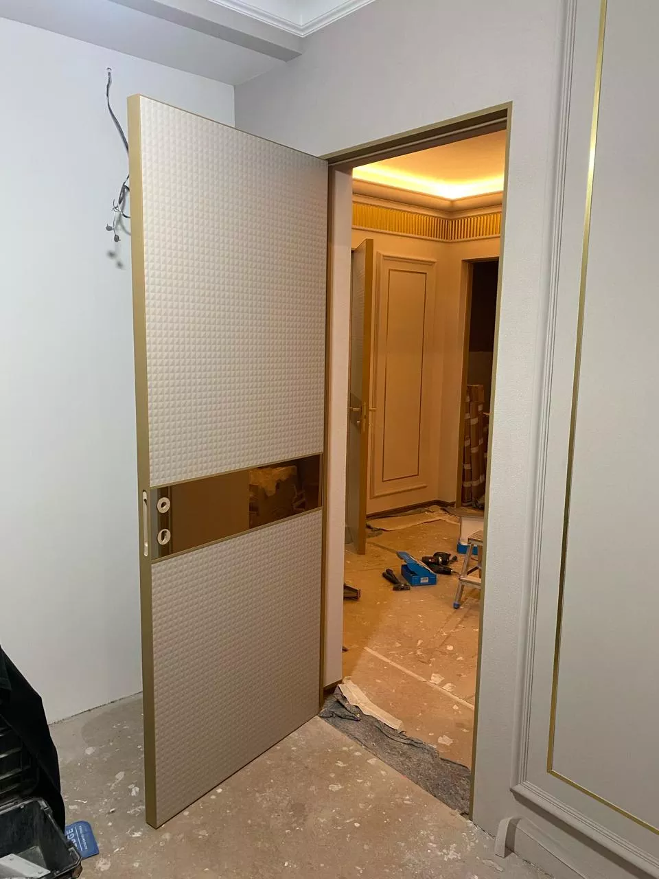 Стиль арт-деко отличает исключительно строгая и четкая геометрия форм, правильные орнаменты, вертикальные и горизонтальные линии. Кроме этого, энергичные оттенки и сочетания цветов, которые вызывают положительные эмоции, выделяя межкомнатную дверь как центральный объект в интерьере.